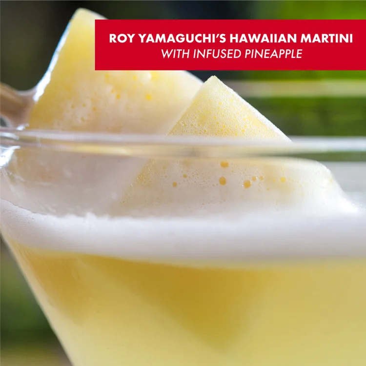 Garnish with pineapple and a maraschino cherry. In a large 6 quart container with a spigot-such as a lemonade ice tea or a punch dispenser-layer pineapple. The Hawaiian Martini has been Roys signature.